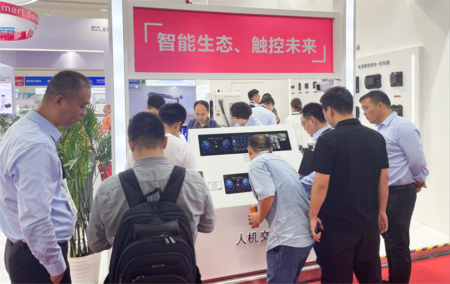 此外最為搶眼的還得數人機交互區域,最新的智能座艙系列產品、顯控一體機等設備,吸引眾多客戶駐足體驗互動,設備不僅可實現上電即用,并且環境可靠性高,適用于各種惡劣環境,再配合智能按鍵面板以及電源管理?,可拓展更多用戶自定義功能,為客戶量身打造多元化的智能座艙場景。